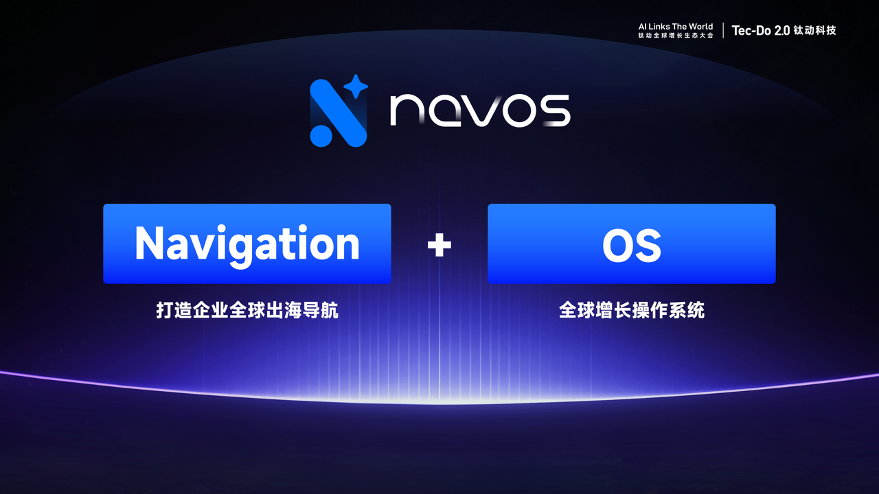 历经第一代产品4年、第二代产品5年的持续迭代,钛动科技正式迈向以Multi-Agent为核心的第三代产品阶段。Navos作为这一愿景的载体,取名自“Navigation(打造企业出海导航)”与“OS(全球增长操作系统)”,旨在成为中国企业全球化的一站式出海指南。