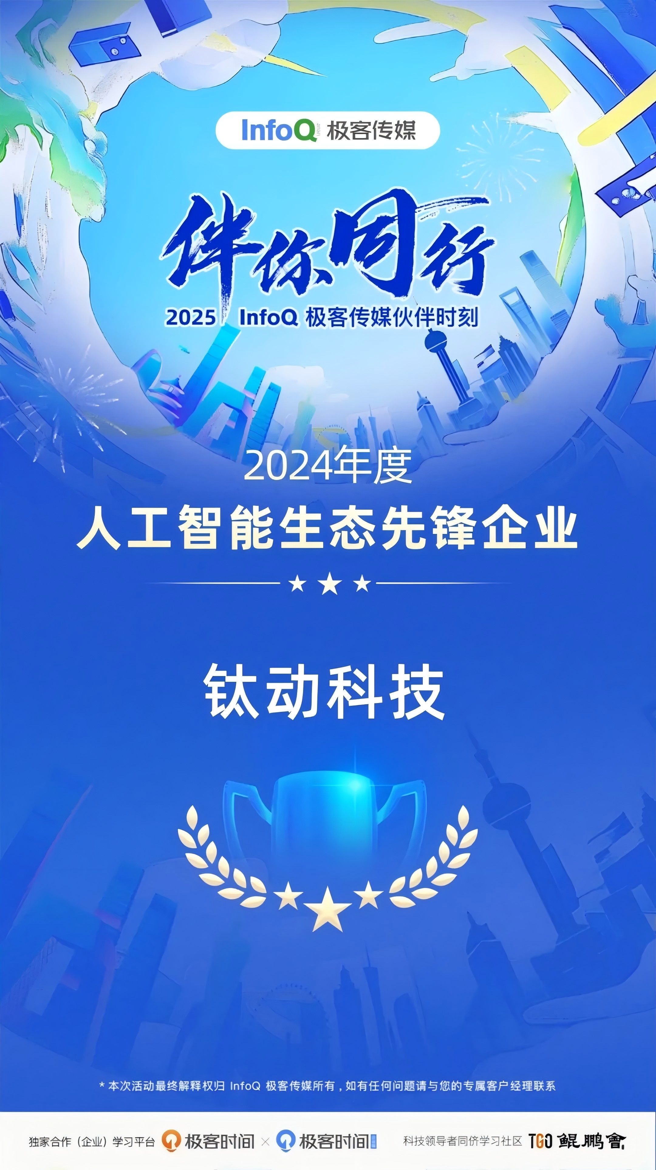 钛动科技与智谱、月之暗面、零一万物同获 InfoQ 2024年度人工智能生态先锋企业奖