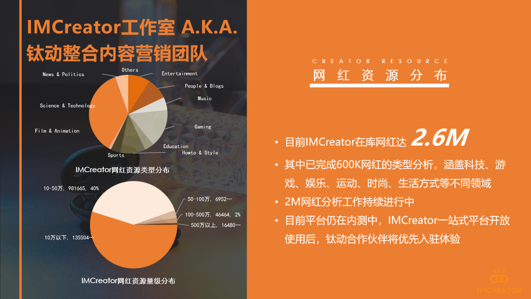 IMCreator拥有庞大的网红资源,目前在库网红达260W,涵盖科技、游戏、娱乐、运动、时尚、生活方式等不同领域。
