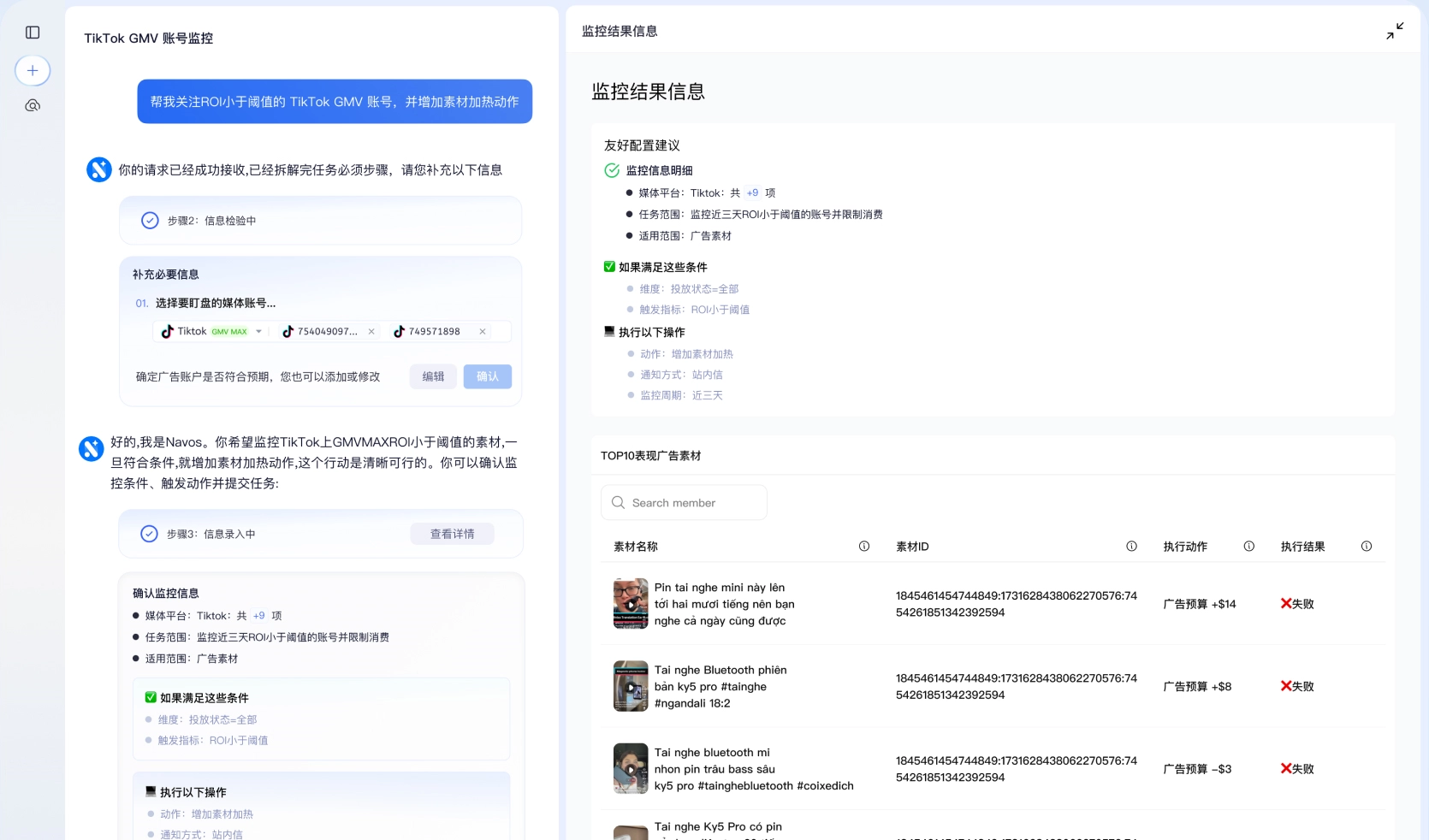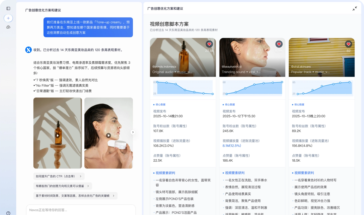 提供 Navos AI 驱动的营销参谋方案,全局把控投放效果与增长节奏。